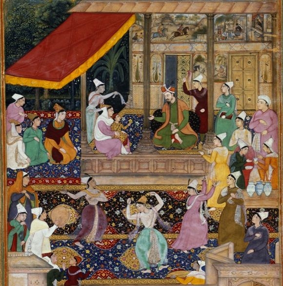منمنمة مغولية للحريم من كتاب أكبرنامه، رسم مدحو و نارسيغ عام 1602 - 1603 From the Akbarnāmah by Madhu and Narsigh, 1602-3